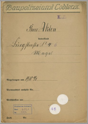 [3] Vgl. StAK DB 10, Stadtverwaltung (Bauverwaltung), hier: Die Organisation und Registratur der Bauverwaltung der Stadt Koblenz, S. 1.