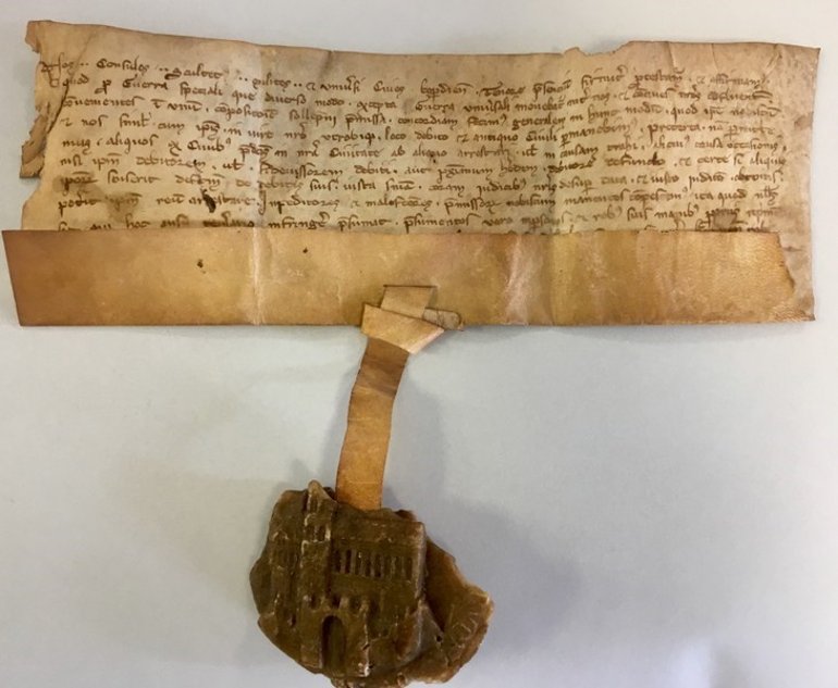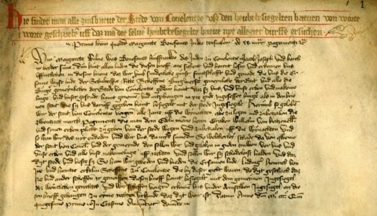 Neben Akten gehören auch offizielle (von Kaisern, Königen und Päpsten) und später auch „private“ Urkunden (von Fürsten, Landesherren, Bischöfen, Klöstern, Städten und – vor allem adeligen – Privatpersonen), nach Ahasver von Brandt „die häufigsten und wichtigsten Quellen zur mittelalterlichen Geschichte“[1], zu den sogenannten „Überrestquellen“. Im Rahmen „einer frühen Entwicklungsstufe schriftlicher Verwaltung“[2], die im Laufe der Zeit steig zunahm und sich weiter ausdifferenzierte, spiegeln sich auch in ihnen rechtliche, wirtschaftliche und/oder politische Akte/Geschäfte wider, „die man bis dahin ausschließlich mündlich und in rechtssymbolischen Formen abgeschlossen hatte“[3], wenn auch überwiegend „nur“ mit dem jeweiligen Ergebnis „als abschließende, rechtswirksame Dokumentation einer Handlung“[4]. Sie dien(t)en „als rechtskräftige Beweismittel im Streitfall“[5] und „als Instrumente machtpolitischer, rechts- und besitzstabilisierender Maßnahmen“[6] und wurden dementsprechend wachsam und zunehmend geordneter bzw. systematischer in speziellen „Schatzarchiven“ bzw. „Urkundendepots“ aufbewahrt. Bis zum Spätmittelalter in lateinischer Sprache verfasst, folgen Urkunden in der Regel sowie je nach Typus, Zweck, Entstehungszeit und -ort im Sinne der Rechtssicherheit und -verbindlichkeit einem bestimmten formalen sowie sprachlichen und inhaltlichen Schema, auch anhand sogenannter „Muster- und Formelbücher“[7], und konnten je nach Anlass sowohl feierlich-ausführlich als auch eher kurz und schlicht ausfallen. Im Groben bilden Eingangsprotokoll, Urkundentext bzw. -kontext und Schlussprotokoll die drei zentralen Urkundenbausteine, die in sich jeweils noch einmal feiner untergliedert sind. Der „Reinschrift“ bzw. „Ausfertigung“ einer Urkunde geht vor allem seit dem Spätmittelalter ein „Konzept“, also „der unbeglaubigte, häufig korrigierte Entwurf“[8] als eine Art Spiegelbild „der Willensbildung beim Aussteller in einer früheren Stufe“[9] sowie nicht selten auch als Originalersatz, voraus. Ihr (Rechts-)Inhalt wurde anfänglich etwa mit einer Unterschrift, später aber vor allem mit ei nem Siegel, auch zusammen mit einer Unterschrift, bestätigt bzw. beglaubigt.[10]