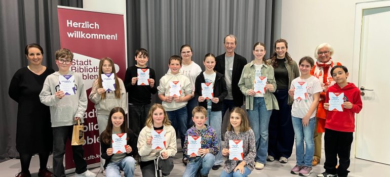 Beim von der Stadtbibliothek Koblenz veranstalteten Stadtentscheid im Vorlesewettbewerb des Deutschen Buchhandels traten vor kurzem 13 Kinder der sechsten Klassen an, um in zwei Runden die besten Vorleserinnen und Vorleser des Jahres 2026 zu ermitteln.