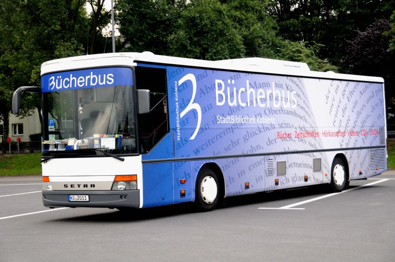 - Bücherbus- Bestellen Sie Ihre gewünschten Medien mind. einen Tag vor dem Anfahren einer Haltestelle per Mail oder telefonisch vor: fahrbibliothek-stb@stadt.koblenz.de oder 0163-9708677 - Die Fahrbibliothek (Bücherbus) ist vom 26.10.2025 bis zum 4.11.2025 geschlossen! - Entfall Haltestelle Pfaffendorf Aufgrund einer baulichen Verengung auf dem Kirmesplatz kann die Haltestelle Pfaffendorf leider nicht mehr angefahren werden. Den Nutzerinnen und Nutzern steht der Bücherbus-Service bis auf Weiteres an der Haltestelle Ehrenbreitstein (Kapuzinerplatz) am gleichen Tag von 15.00 Uhr bis 16.30 Uhr zur Verfügung. Es besteht die Möglichkeit, die entliehenen Medien telefonisch (0261/129-2626) oder im Internet (https://stb.koblenz.de) zu verlängern. Zudem können die Medien jederzeit in der Zentralbibliothek im Forum Confluentes zurückgegeben werden. - Haltestellenänderung Bisholder, Güls und Lay Aufgrund der aktuellen Sperrung der Bundesstraße nach Koblenz-Lay ist der Fahrplan am Donnerstag für die Haltestellen Güls, Bisholder und Lay bis auf Weiteres geändert worden: die Haltestellen Bisholder und Lay werden nur noch alle 4 Wochen angefahren, die Haltestelle Güls wird auf den Parkplatz "Turnerheim" (gegenüber dem ehem. Stieffenhofer-Gelände) verlegt. Den nun geltende Plan finden Sie hier.  - Der "Große Bücherbus" verfügt über 8.000 Bände an Sachbüchern, Belletristik sowie Kinder- und Jugendliteratur. Außerdem befinden sich 1.800 Hörbücher und 800 Filme für Kinder und Erwachsene sowie neuerdings auch 250 Tonies im Bestand. Die "mobile Filiale" ist nicht nur in Koblenz sondern auch in Mülheim-Kärlich für die Literaturversorgung im Einsatz. - Tel. 0261-129 2660 (vormittags) und Mobil: 0163-9708677