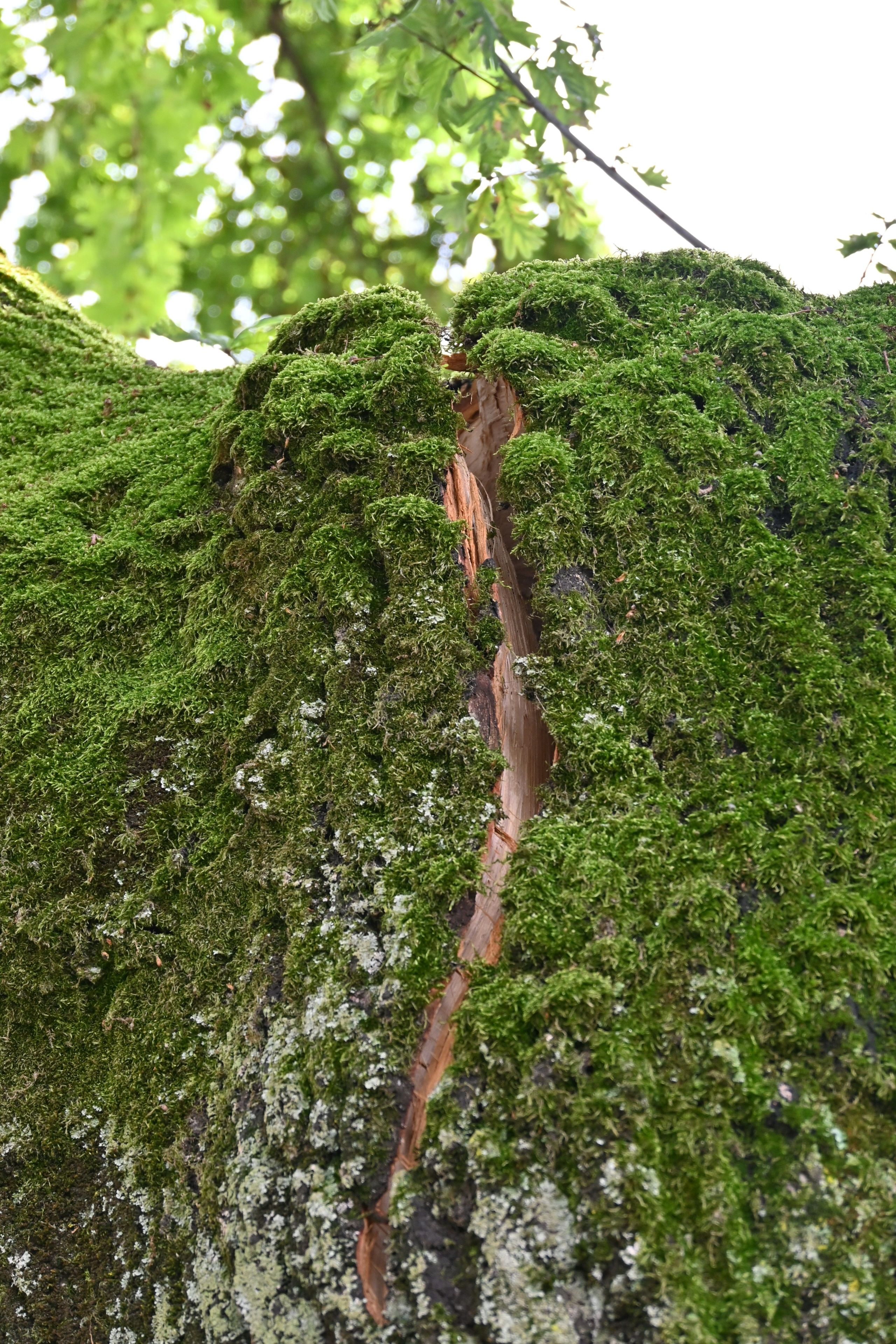 Fotos (Stadt Koblenz / Verena Groß): Der Stamm einer ortsprägenden Eiche an der Schlachthofstraße ist vermutlich durch Wind und Starkregen aufgerissen.