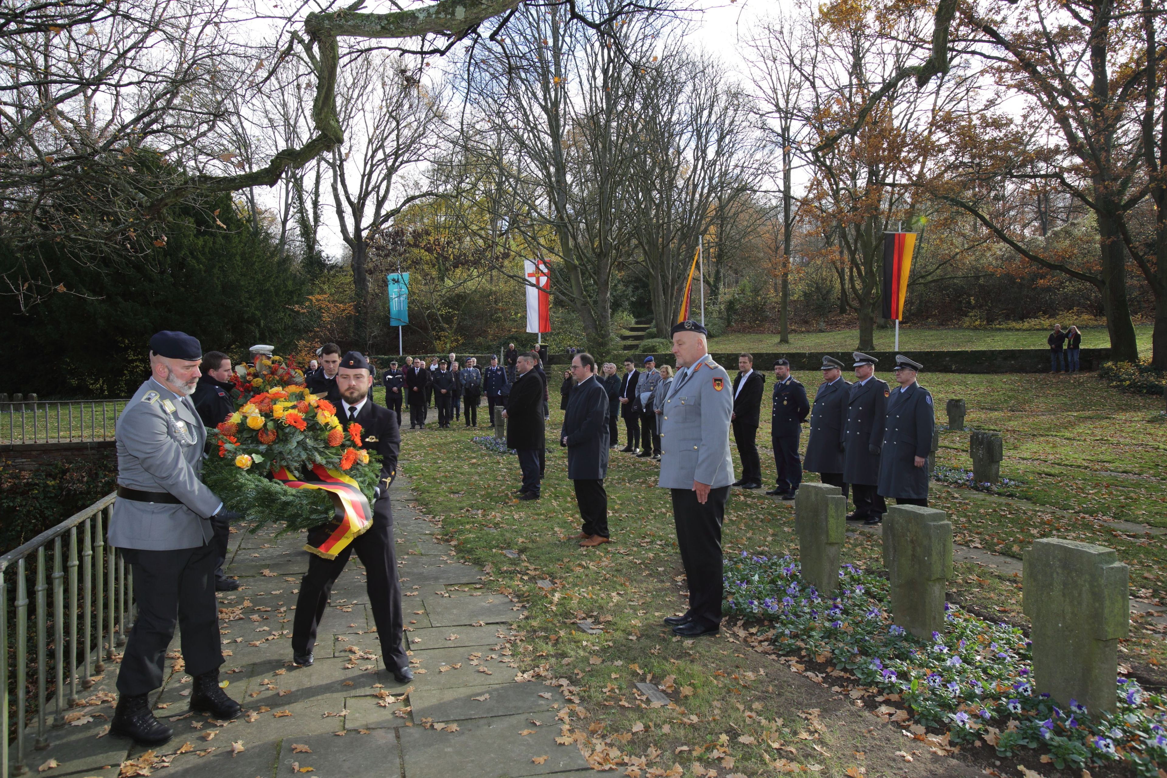 Das Foto von Ingo Beller zeigt die Kranzniederlegung beim Pulverturm auf dem Koblenzer Hauptfriedhof.