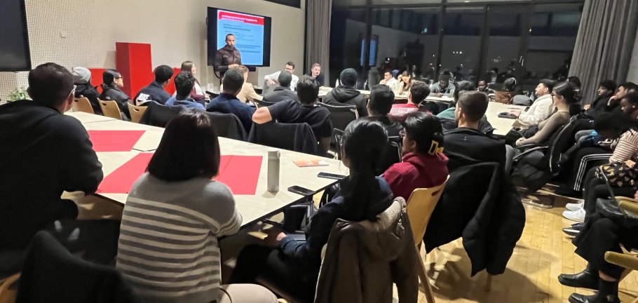 Diese Themen spielen für internationale Studierende eine zentrale Rolle – von der Einreise über die Aufenthaltserlaubnis bis zum erfolgreichen Abschluss des Studiums. Der direkte Austausch mit den Experten bot den Teilnehmenden wertvolle Orientierung und half, Unsicherheiten abzubauen.