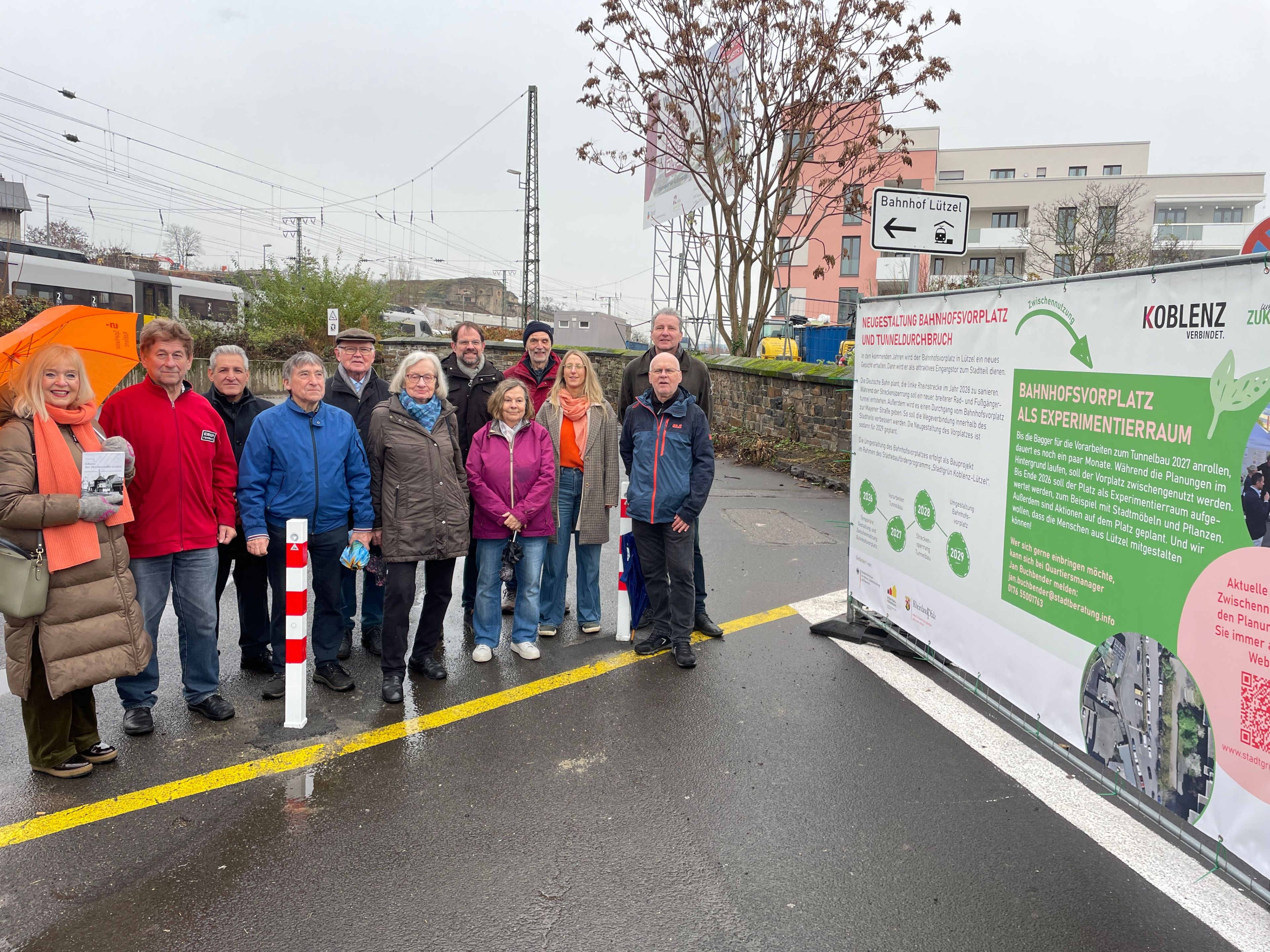 Eine Beteiligungsaktion auf dem Bahnhofsvorplatz im September 2025 lieferte zahlreiche Ideen, wie der Platz zeitweise gestaltet und durch Aktionen mit Leben gefüllt werden kann. Die Ergebnisse wurden aufbereitet und auf ihre Umsetzbarkeit hin überprüft. Erste Aktionen für die Zwischennutzung sind bereits in Planung, darunter ein Graffiti-Workshop mit Schülerinnen und Schülern sowie ein Flohmarkt. Parallel dazu liefen Abstimmungen in enger Zusammenarbeit zwischen der Stadt Koblenz und dem Quartiersmanagement „Stadtgrün Koblenz-Lützel“ sowie Anliegern, um die Fläche vorzubereiten.