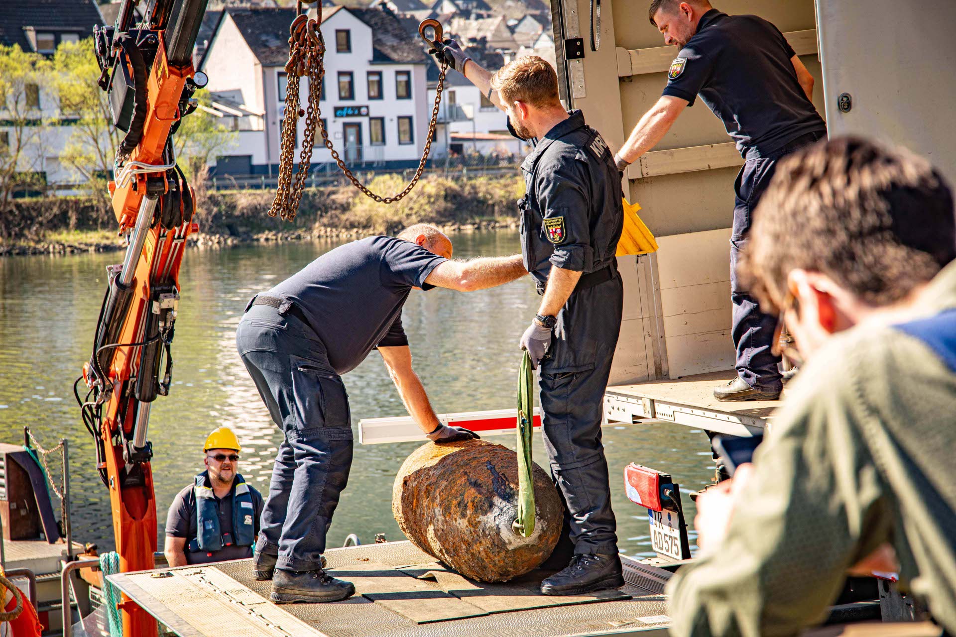 Der Fund dieser Weltkriegsbombe sorgte Anfang April für kurzzeitige Einschränkungen auf der Baustelle der Pfaffendorfer Brücke. Foto: Stadt Koblenz/Andreas Egenolf