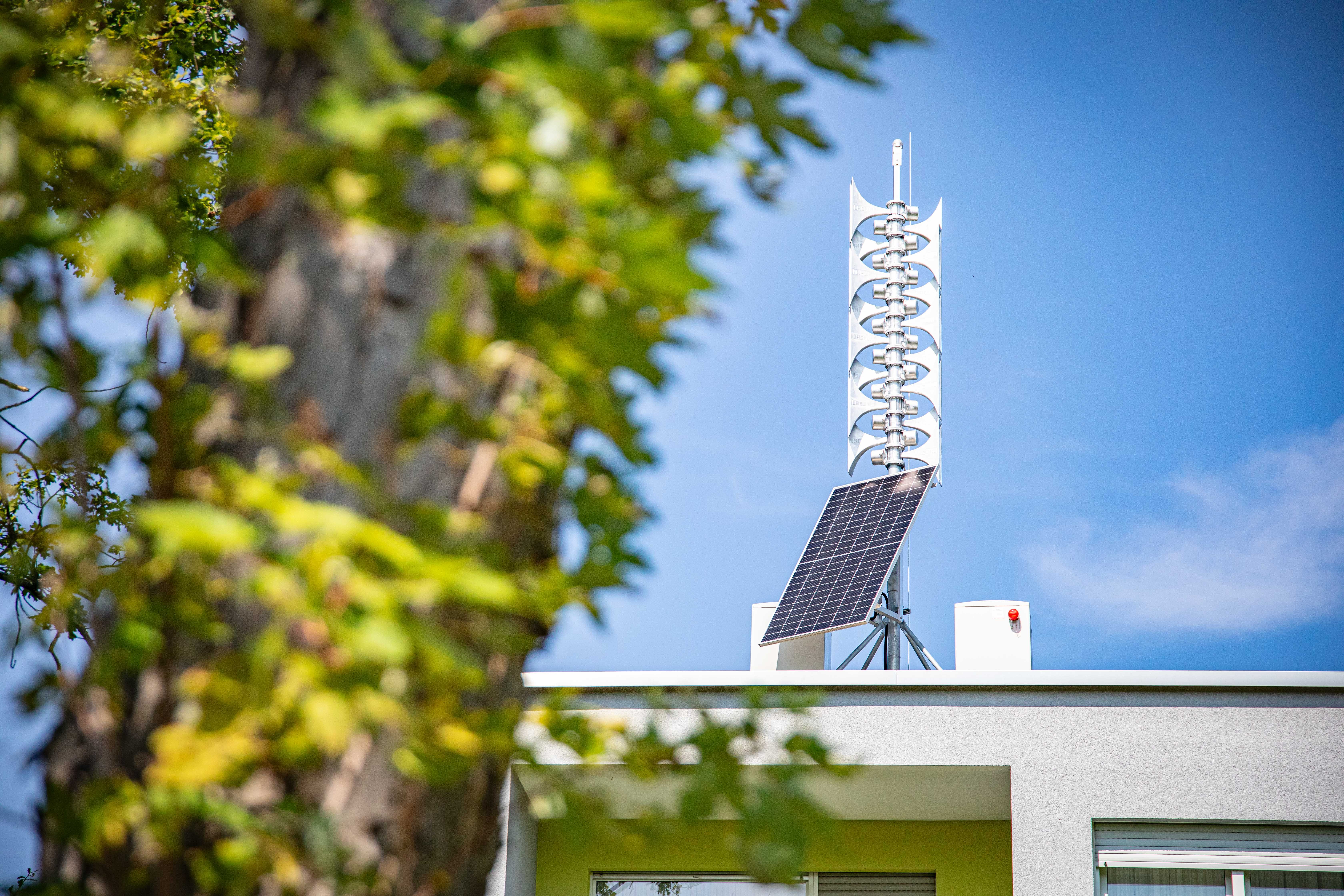 Foto (Stadt Koblenz / Andreas Egenolf): Beim Warntag werden in Koblenz unter anderem die Sirenen, wie hier auf einem Wohngebäude in der Koblenzer Straße, auf ihre Funktionsfähigkeit getestet.