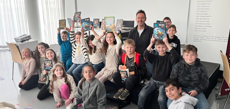 Am Montag, 9. März fand der Abschluss der Aktion statt. Die glücklichen Gewinner, die Schülerinnen und Schüler der Klasse 3b aus der Grundschule Kesselheim, kamen nun mit ihrer Lehrerin Mira Seifert in die Stadtbibliothek und wurden für ihren Einsatz mit einer besonderen Lesung belohnt. Zu Besuch war der Autor Björn Berenz, der aus seiner Buchreihe Explorer Team vorlas. Die Veranstaltung war super witzig, spannend und lehrreich: Der Autor zeigte sich sehr kreativ und interaktiv, baute Rätsel ein und bezog die Kinder aktiv mit ein. Die Schülerinnen und Schüler hatten viel zu lachen und machten fleißig mit – ein rundum gelungener Abschluss der Vorleseaktion. Zum Schluss erhielt jedes Kind ein spannendes Würfel-Spiel.
