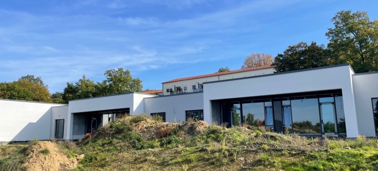 Auch in Punkto Klimafreundlichkeit kann sich die neue Kindertagestätte sehen lassen: So wir das Dach zum einen begrünt und bekommt zum anderen auch eine Photovoltaikanlage. Die Beheizung des Gebäudes erfolgt mittels einer Erdwärmepumpe. In Kombination sorgen diese drei Maßnahmen dafür, dass der CO2-Fußabdruck der Kita stark minimiert wird.