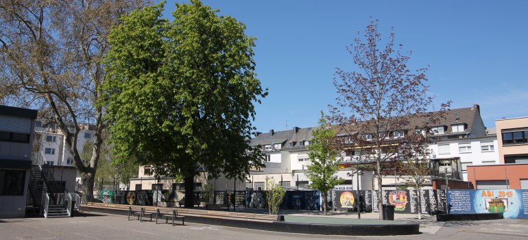 Der Schulhof des Eichendorff Gymnasiums in der Koblenzer Innenstadt erhält derzeit eine Rundumerneuerung. Daneben werden auch das Dach und die Fassade der Schule energetisch saniert.